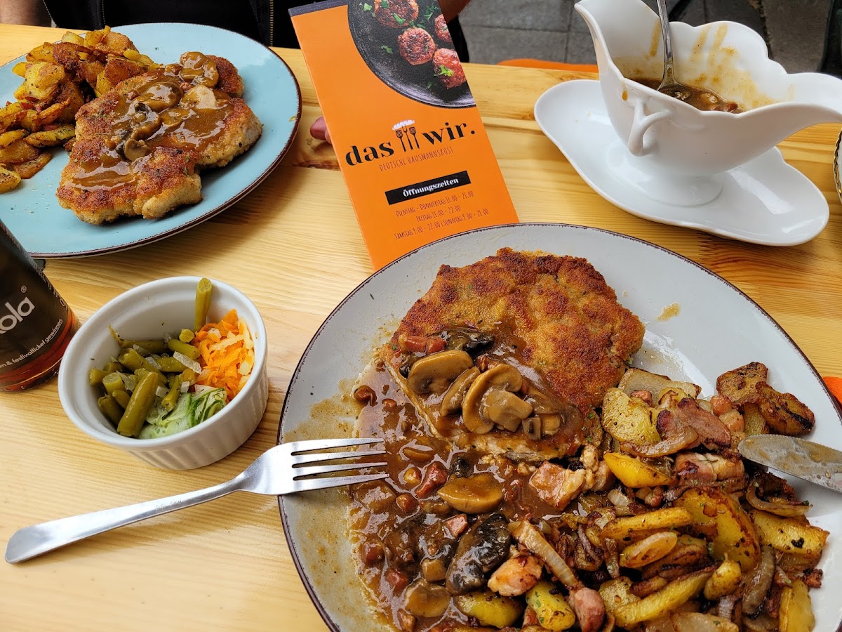 Driving around Bremen, Germany and got hungry and since we are in Germany we wanna eat German Cuisine. Found this Gem. Don't let the unassuming exterior fool you! Das-Wir Bremen is a true hidden gem. From the moment we walked in, the service was incredibly warm and welcoming. Our server, was knowledgeable and genuinely friendly, making us feel right at home. The food was the real star: the Knipp Mit GewurzGurke/Apfelmus, dazu, Bratkartoffeln was perfectly cooked with balanced flavors, and the Rinderroulade Gefullt Mit Speck, Zwiebel, BratensoBe, Zalzkartoffeln, Rotkohl was a revelation of fresh, high-quality ingredients. Fresh Made Apple sauce has a rich, complex, and pure apple flavor without the overly sweet taste. The Crispy quality, Rich, flavorful sauces, and Perfectly fried egg of their Schnitzel Ala Benedict Art mit Spiegelei:Hollandaise was very delicious and crave-worthy. Every dish felt thoughtfully prepared by the chef, who clearly takes immense pride in their craft. If you're looking for an outstanding meal in a relaxed, unpretentious setting, this is the place to go. You can eat out and smoke as well if you're a smoker. If traveling this was again we will definitely be back for another taste of their magic.